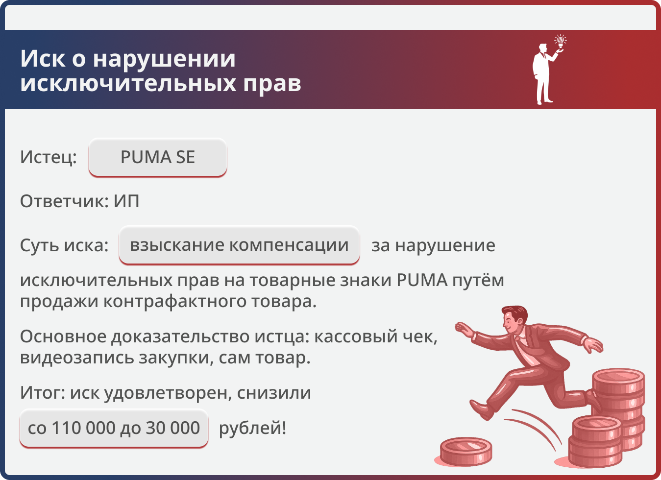 Снижение компенсации PUMA со 110 000 до 30 000 рублей за продажу контрафактного товара